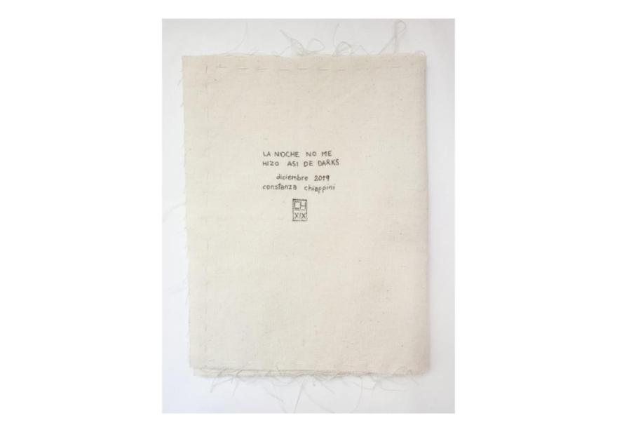 La Noche no me hizo así de Darks – Publicación original para artzine. Lienzo y tinta china. 12 páginas – 17 x 22 cm. – 2019