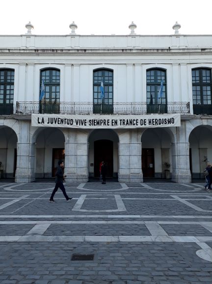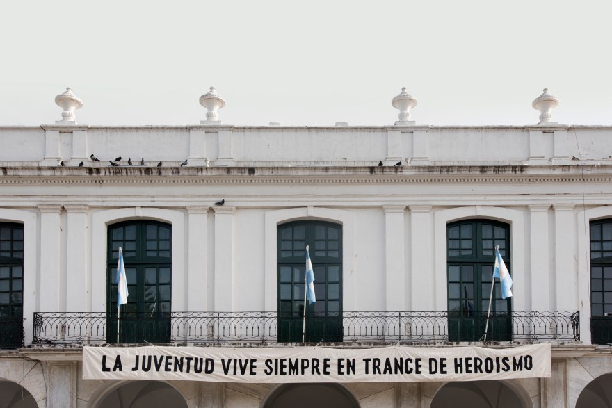 «La Juventud vive siempre en trance de heroísmo» Frase tomada del Manifiesto Liminar de la Reforma Universitaria de 1918. Para la muestra 100 x 100. A 100 años de la Reforma Universitaria. Instalación en el Cabildo de Córdoba. 2018. Córdoba, Argentina.
