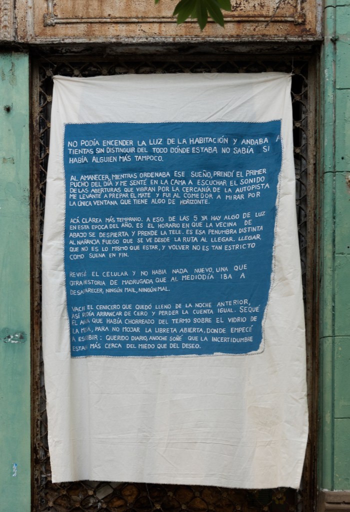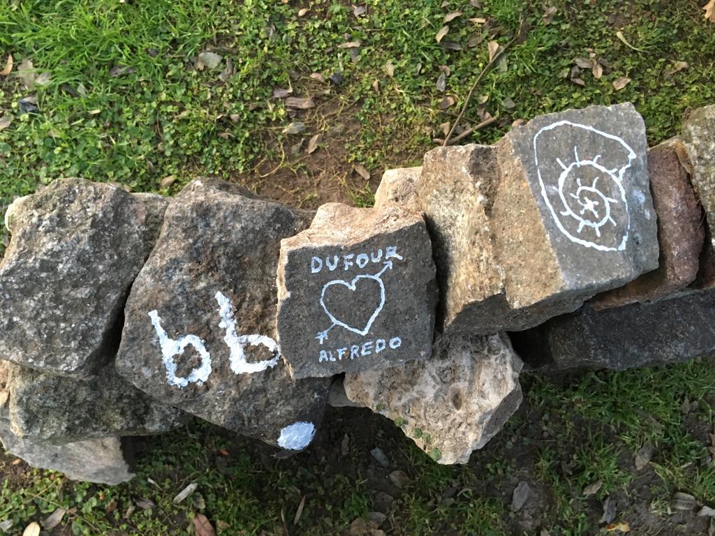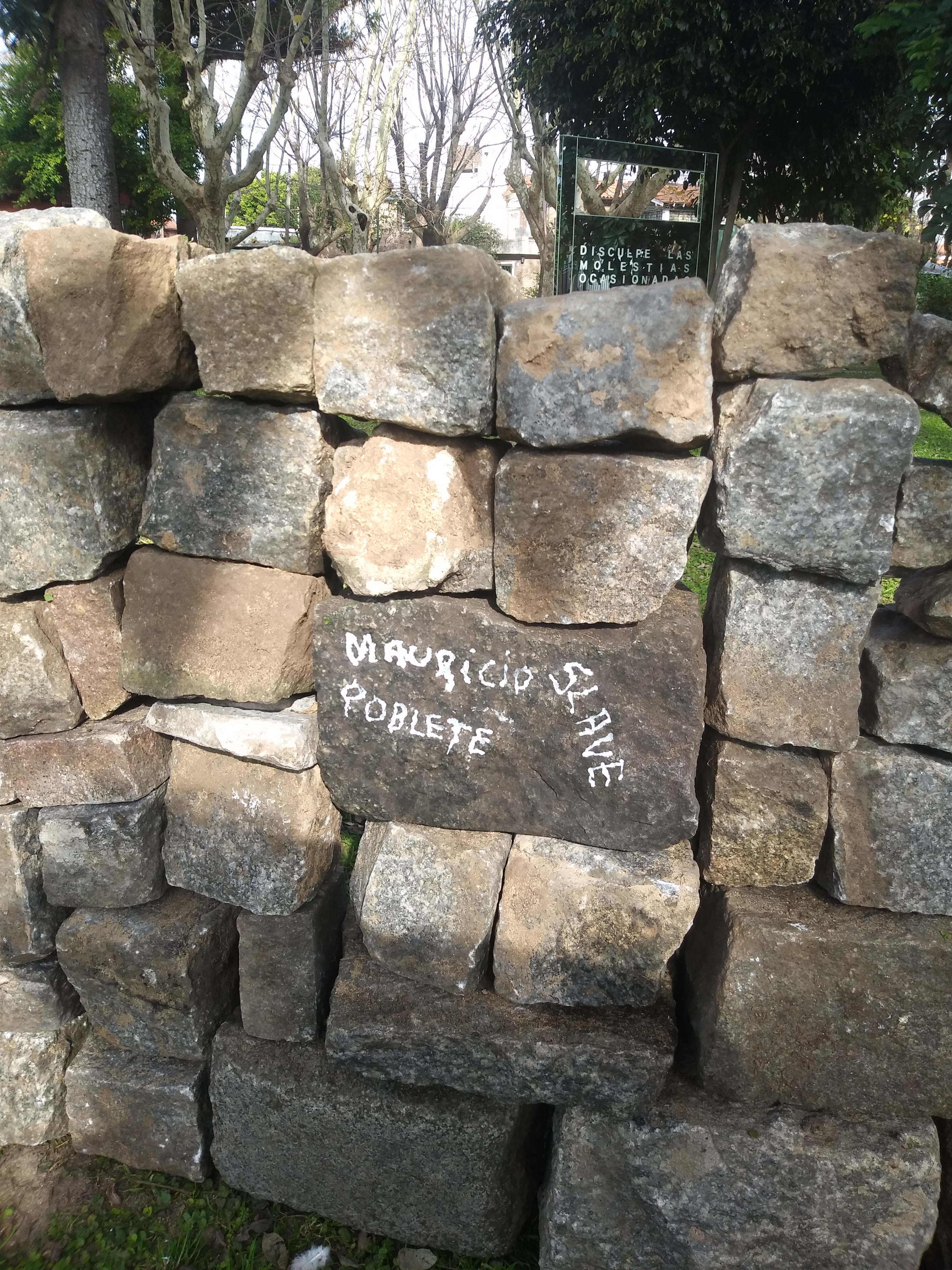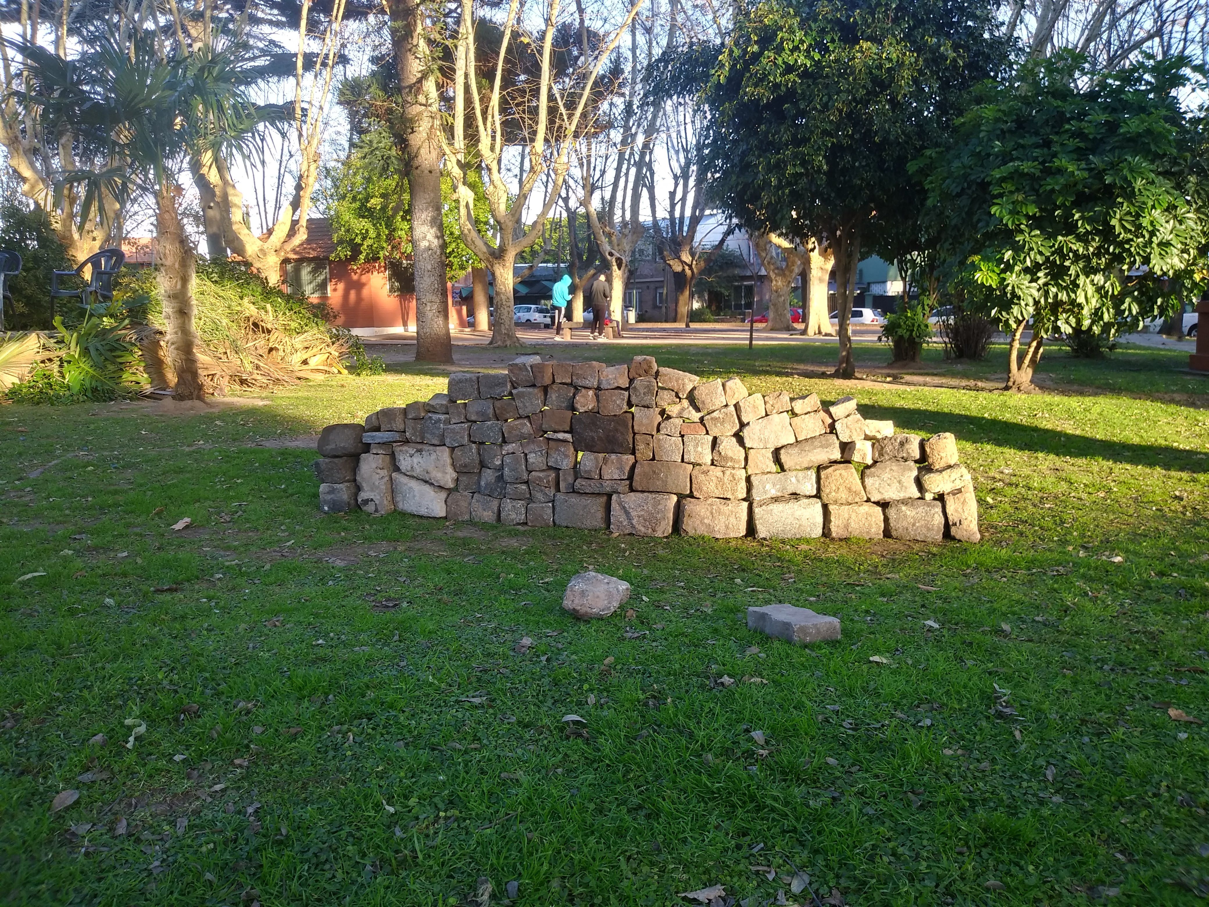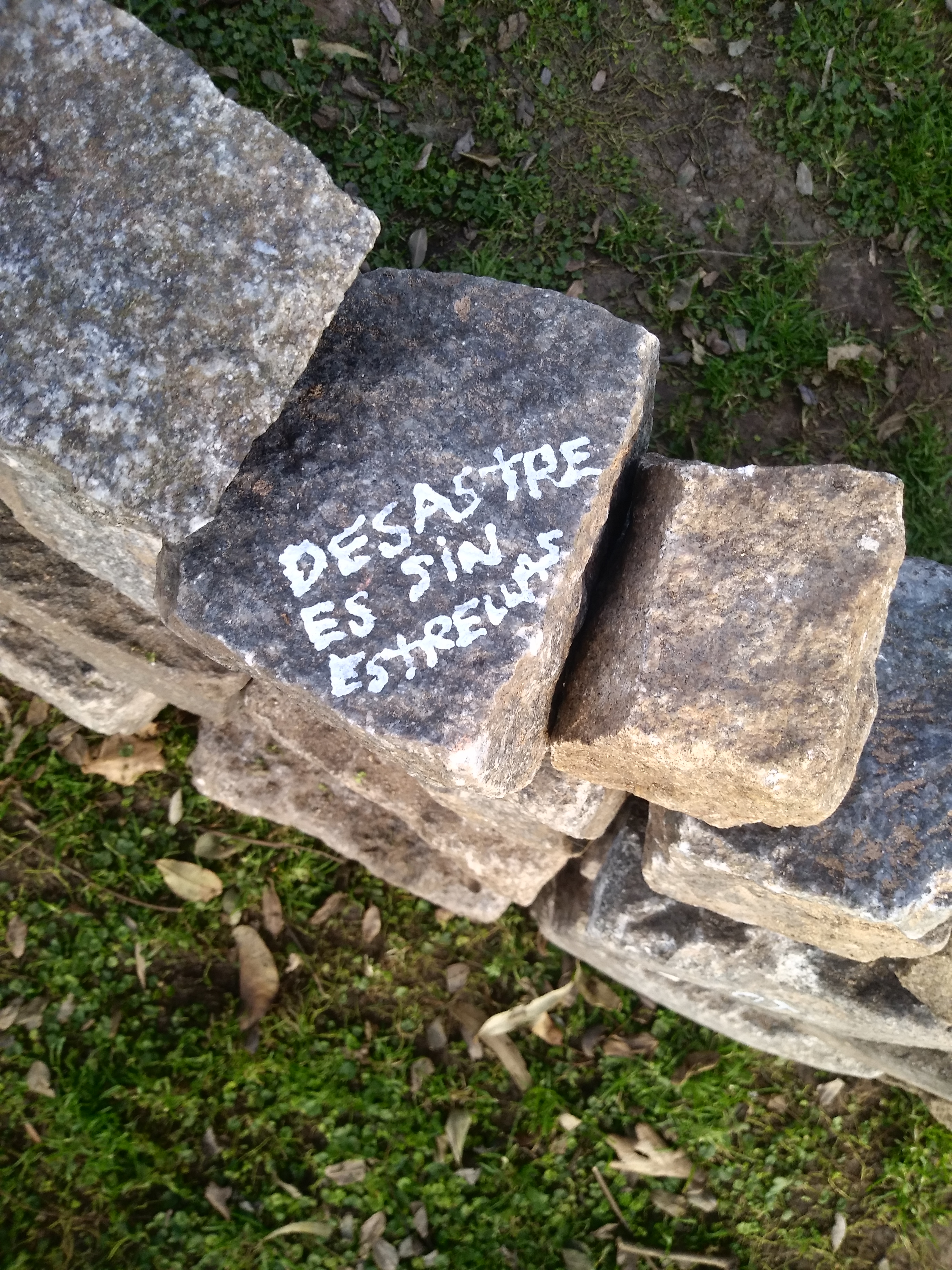 Pensé cosas solemnes pero me quedo con las acciones de esos días, primero en salir a recorrer el barrio en una jornada helada y encontrar poco y nada de material. Tomarme el tren, de vez en cuando, es lo más. Recorrer las calles viendo de dónde sacar los adoquines. Construirla sin mucha idea. Ver que al otro día seguía igual, a pesar de que los perros iban y le hacían pichin. Pedirle a les amigues que la intervengan y que el público se anime a seguir la idea. Ranchear todo el día al sol y comer locro.