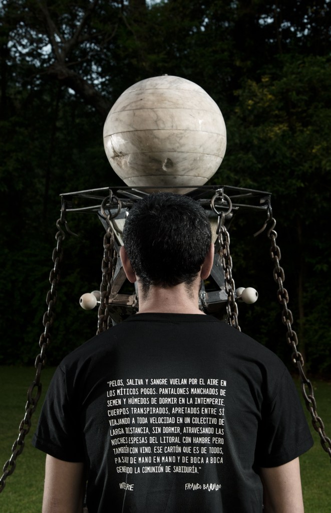 “Pelos, saliva y sangre vuelan por el aire en los míticos pogos. Pantalones manchados de semen y húmedos de dormir en la intemperie. Cuerpos transpirados, apretados entre sí viajando a toda velocidad en un colectivo de larga distancia, sin dormir, atravesando las noches espesas del litoral con hambre pero también con vino. Ese cartón que es de todos, pasado de mano en mano y de boca a boca generando la comunión de sabiduría.”