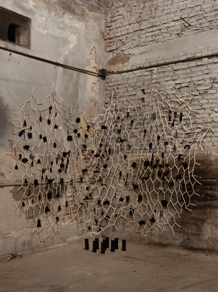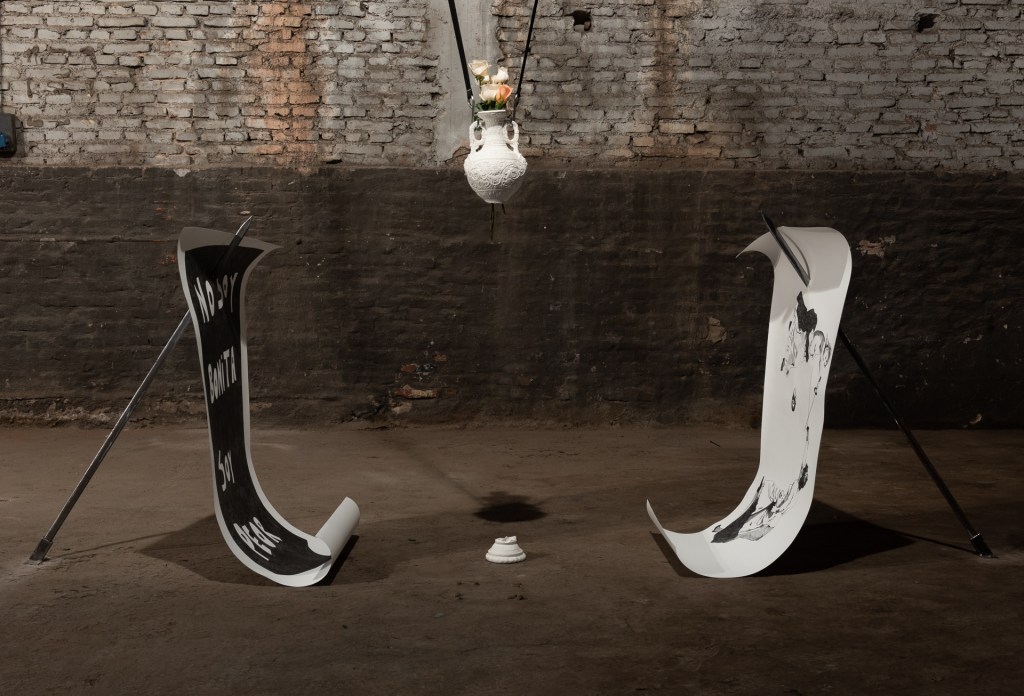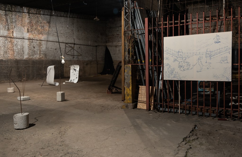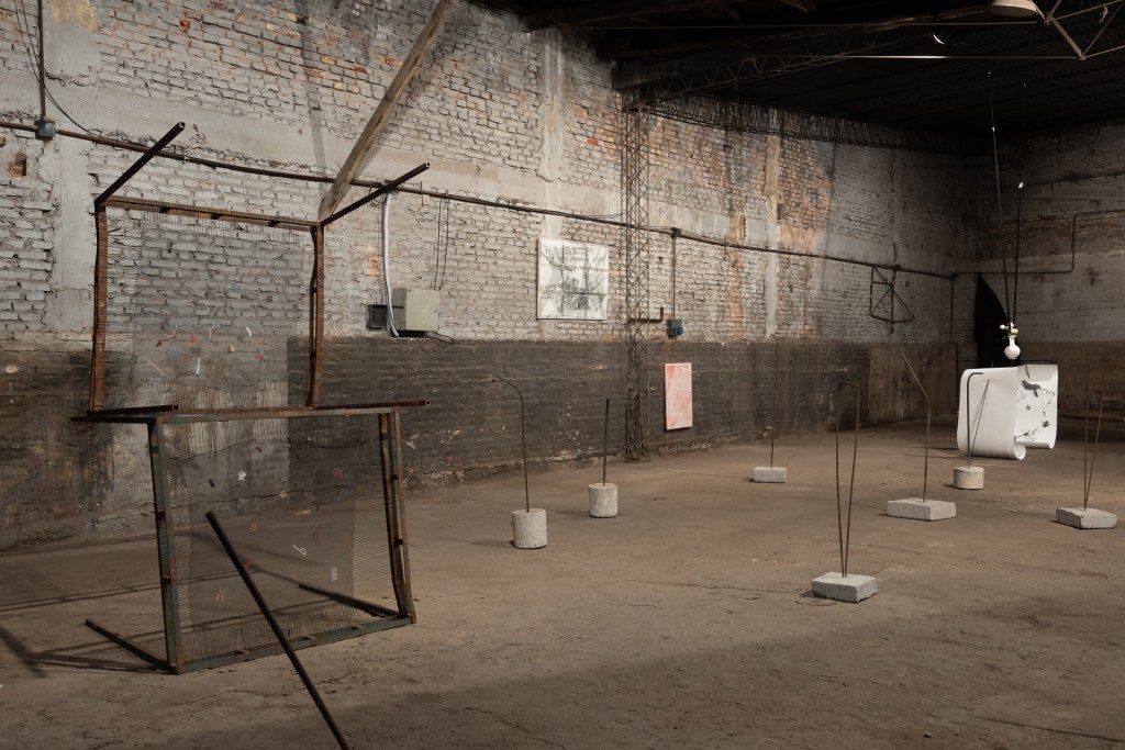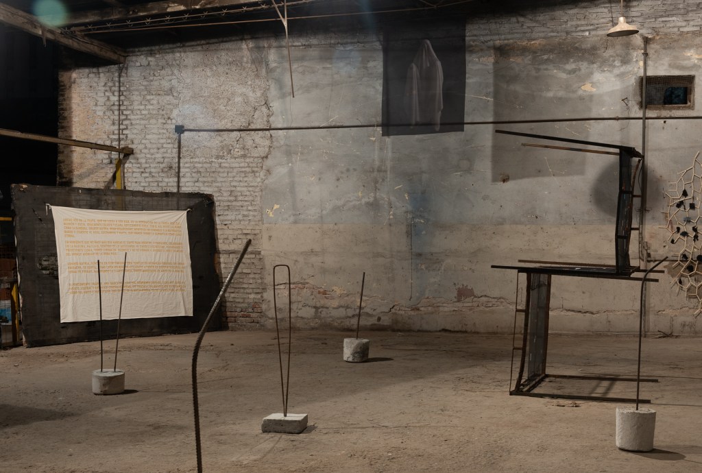Lo afectivo, el interés, el discurso, lo mudado, lo nómade, la raíz, el gesto, la lealtad, los signos, la intersección, el lenguaje, lo solitario, la extrañeza, lo señalado, el cobijo, la cadencia, el cuerpo, la conciencia espacial y lo afectado aparecen en esta exhibición conjugados misteriosamente para lograr una alquimia rara de intencionalidades dispersas en un espacio inhóspito, ruidoso y cercano a un pasado que se nos desvaneció de entre las manos. En este viejo taller mecánico de camiones las obras exhibidas actúan con una naturalidad propia de su origen; extirpada toda forma de solemnidad, aparece con una fuerza arrolladora la voluntad del artista y lo primario de su producción.